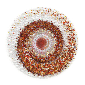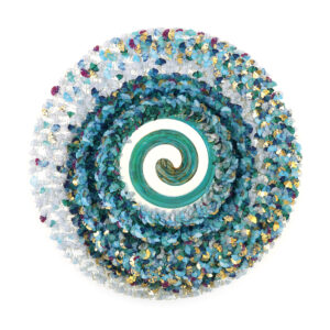 Forme metamorfiche, architetture immaginarie liriche ed evocative caratterizzano l’ambiente in cui si muove la ricerca realizzata mediante l’assemblaggio e l’alchimia di resine sintetiche, vetro, carte e materiali. In tutte le tematiche affrontate vibra la Reverie, un deja-vu analitico che vuole trattenere il sogno e che caratterizza i non luoghi delle architetture d’acqua, il movimento delle esoteriche spirali di farfalle nelle opere mandaliche oppure il limbo che genera i libri di ghiaccio. Ciò su cui si pone l’attenzione è il momento di passaggio, di transizione tra uno stato e l’altro, fra realtà differenti mediante un equilibrio dinamico condividendo un atteggiamento molto vicino alla scienza alchemica volta alla trasmutazione di una materia in un’altra. L’opera racconta un tempo espanso in cui la forma ha il valore di un mandala e la percezione del tempo è dilatata. Le architetture naturali si smaterializzano in universi immateriali e leggeri, in impronte e memorie. Una scultura che è trasparenza e opacità, apparente fragilità strutturata con forte fibra invisibile; disgregazione e assemblaggio; materia che si smembra ed inchiostro che si liquefa.